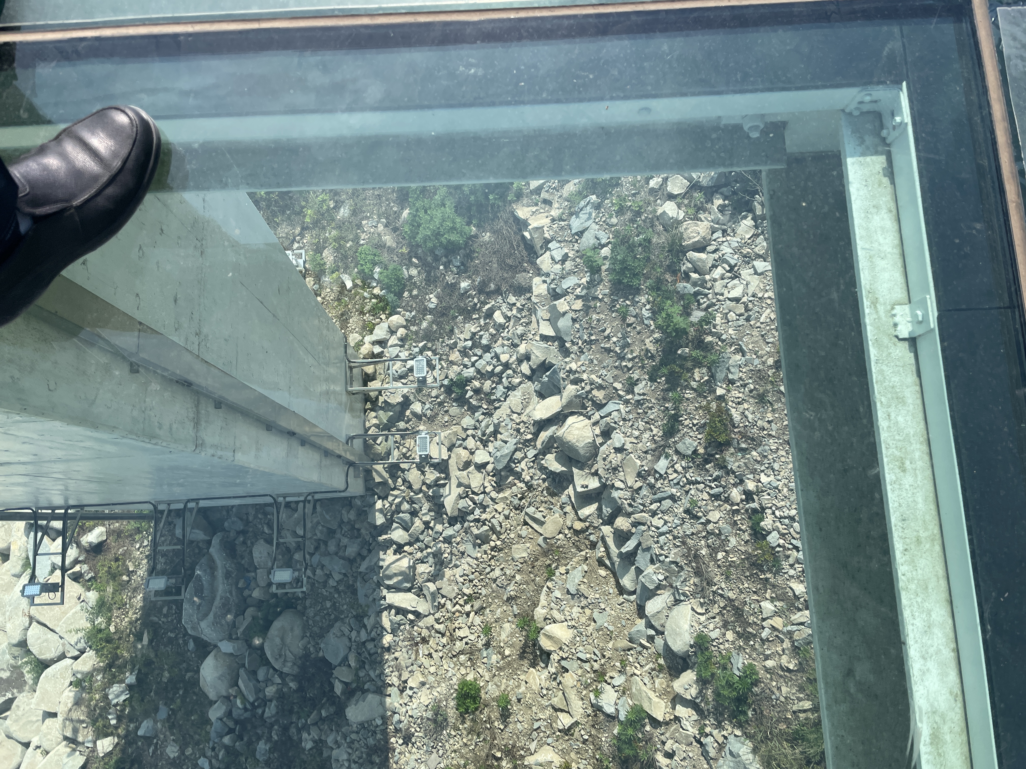 스카이워크 아래에는 유리바닥으로 되어 있어서 밑을 볼 수 있다. 하지만 단지 대략 10미터 아래에 있는 돌바닥을 비춰주는데 별로 감흥이 없었다. 나는 저것보다 몇 배는 더 아찔한 스카이워크를 많이 걸어봐서...