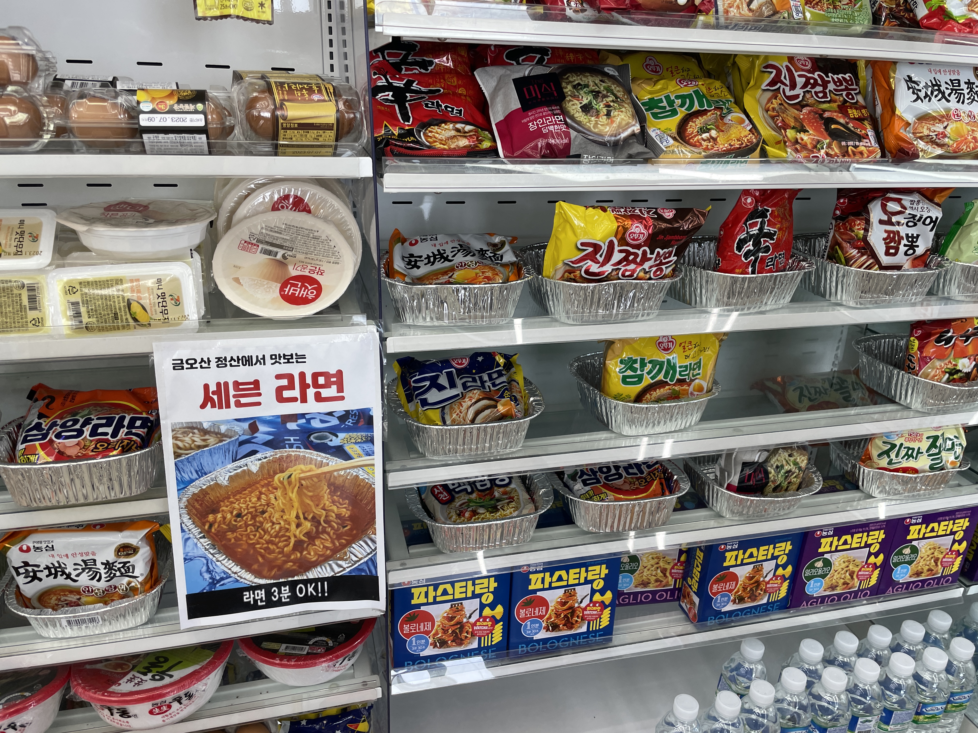 금오산 정상에서 먹는 세븐라면(보통 한강라면이라고 하는 편의점 즉석 조리기로 끓이는 라면) 이 굉장히 맛있어 보였다. 어차피 다른 먹을 것도 없고 하니 바로 주문했다.