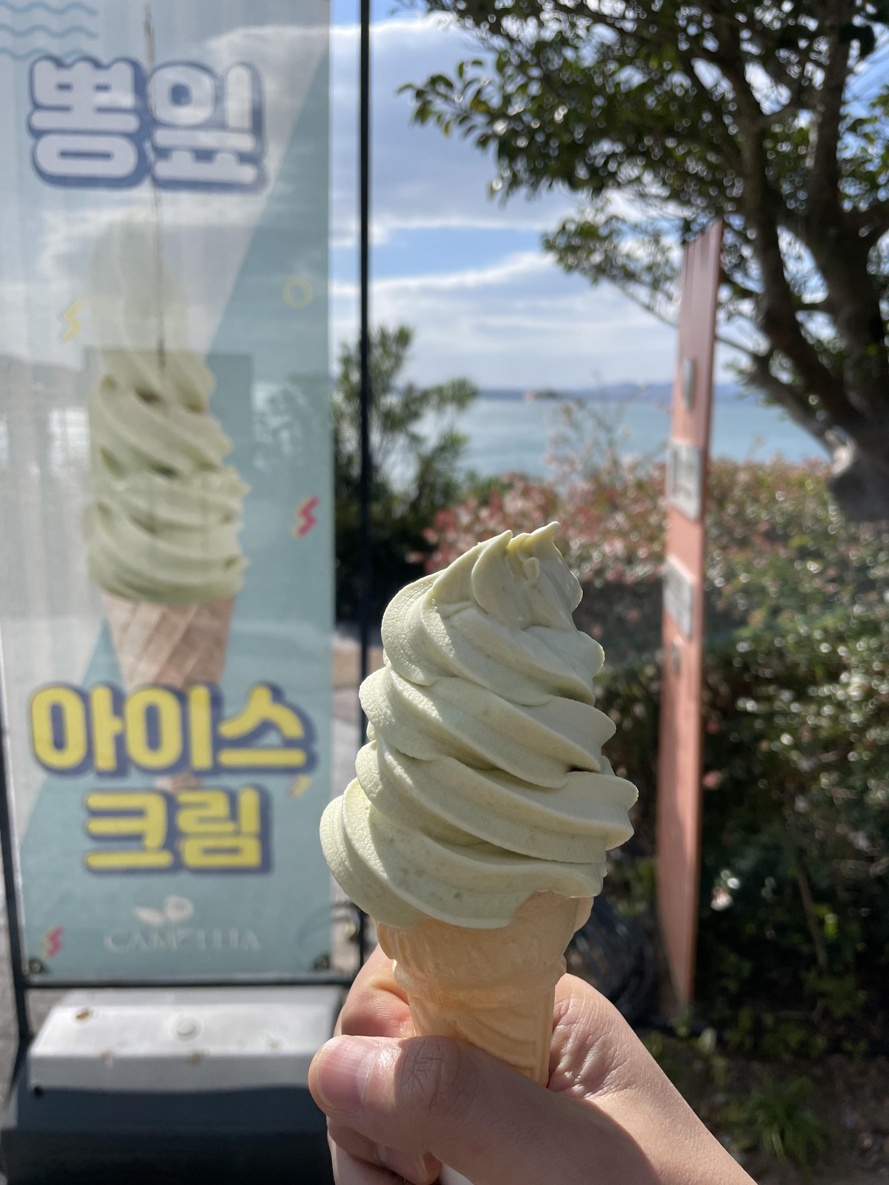 아이스크림을 먹으며 바다를 바라보았다. 날이 맑고 구름도 적절히 껴있어서 환상적인 풍경이었다.