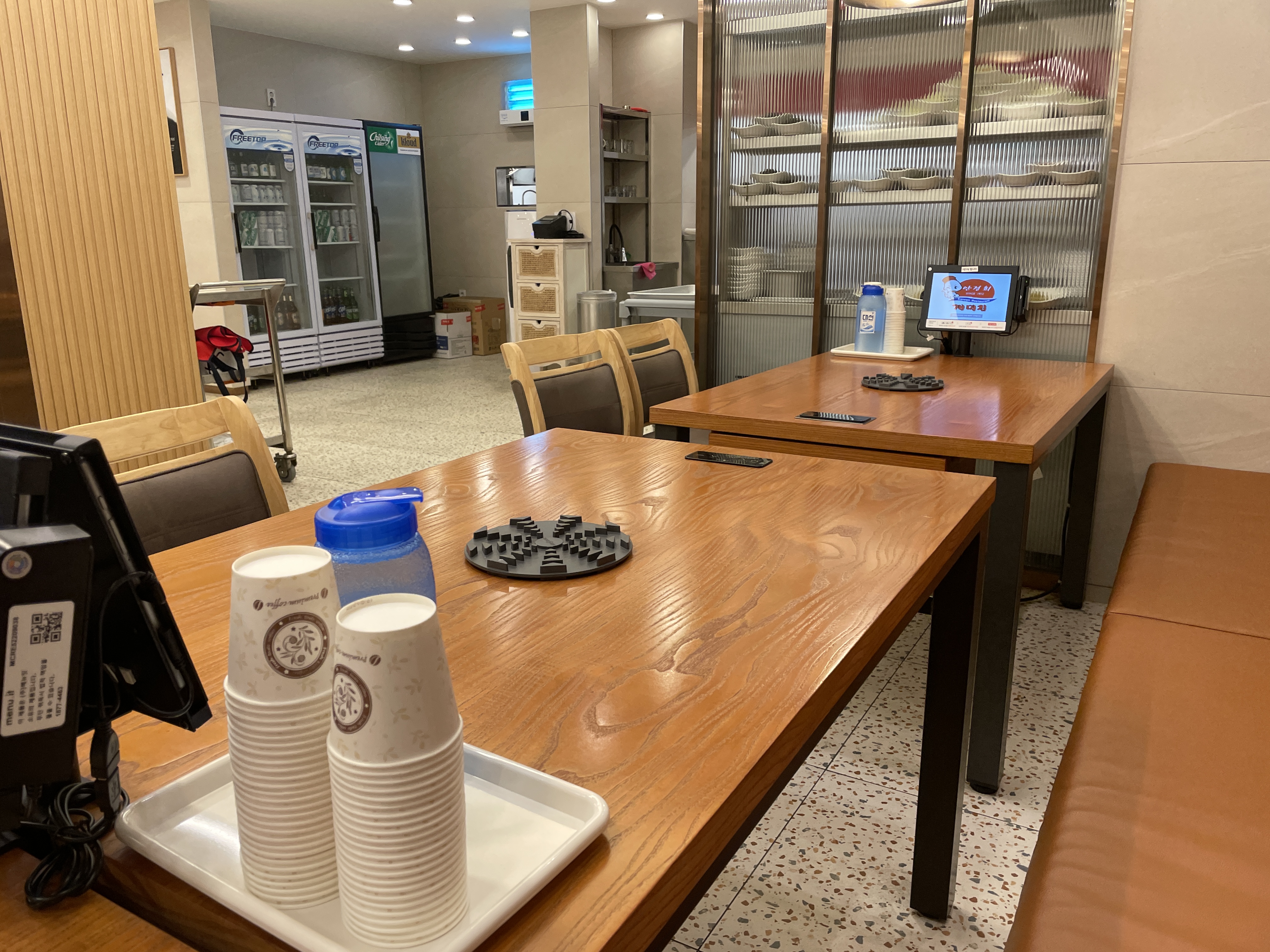 입구쪽에 있는 대기 테이블