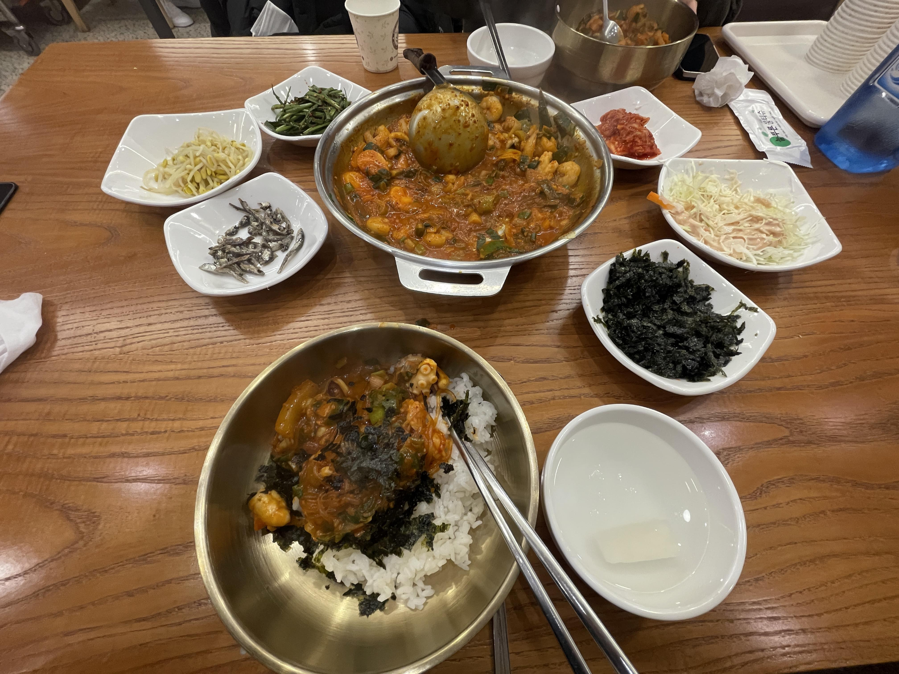 대창은 고소하고 낙지는 쫄깃했다. 새우는...별 특색이 없었다. 대창과 낙지 사이에서 치이는 느낌?