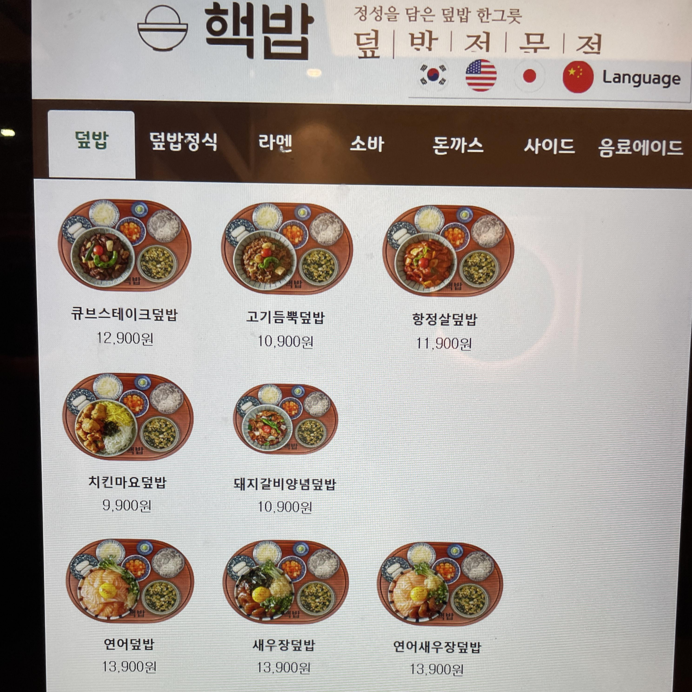 내가 선택한 메뉴는 돼지갈비양념덮밥이었다. 가격 10,900원짜리.