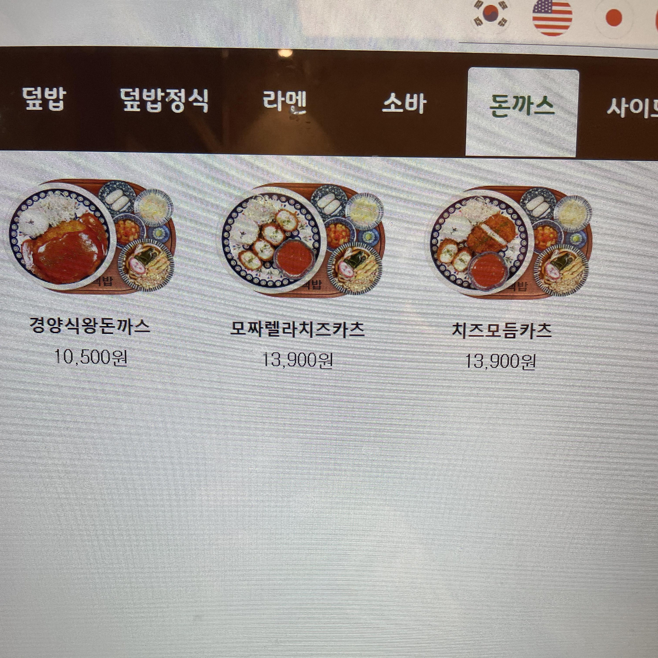 키오스크에서 찍은 2024년 3월 기준 메뉴. 가격표를 밖에다 내놓지 않아서 밖에서는 가격을 알 수 없다.