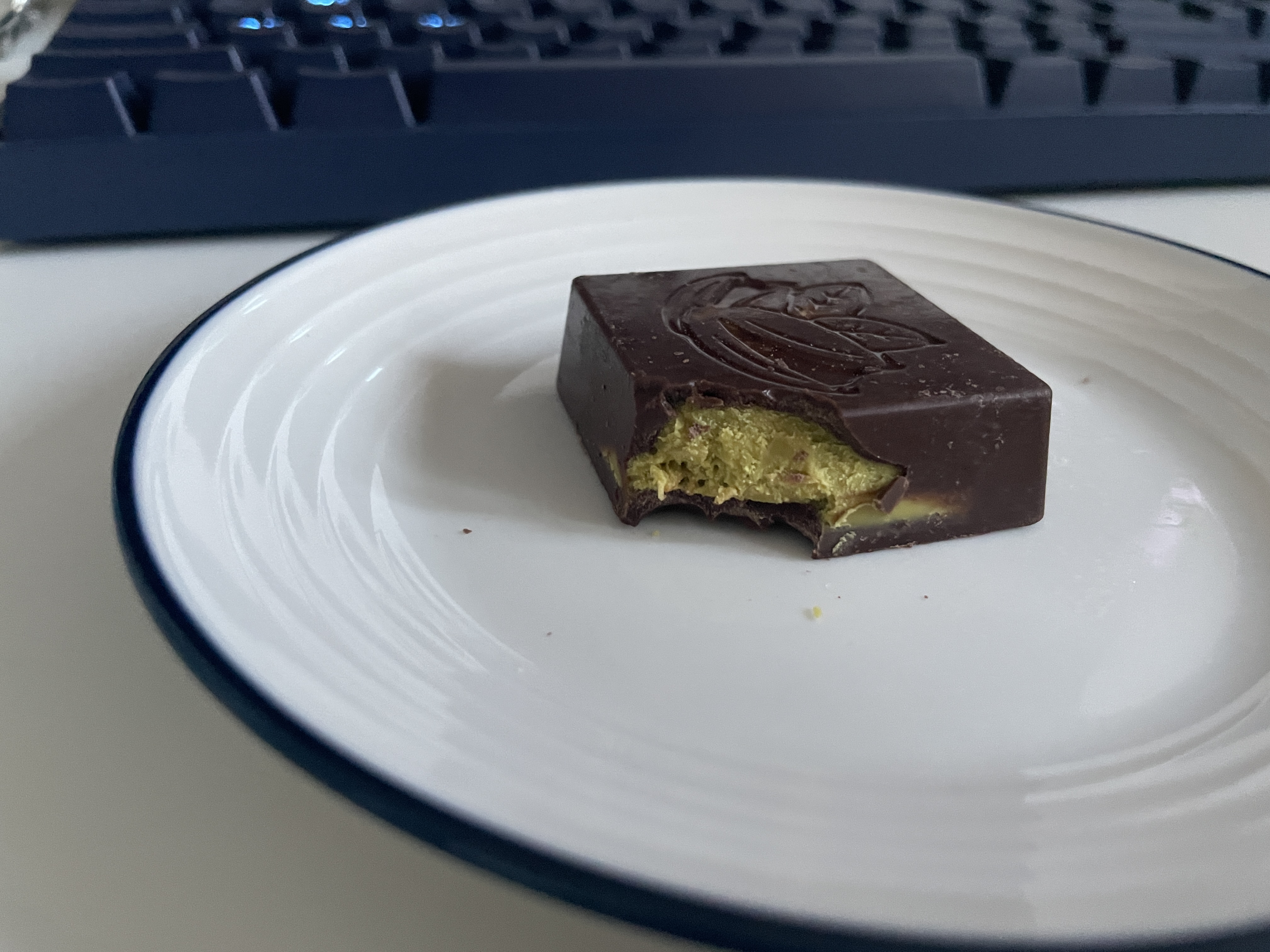 그리고 초콜릿 안에 있는 피스타치오 스프레드의 경우 카다이프면과 진짜 피스타치오가 소량 첨가되어 있다. 문제는 피스타치오 스프레드의 향이 인위적이고 초콜릿이랑 어울리지도 않는다.