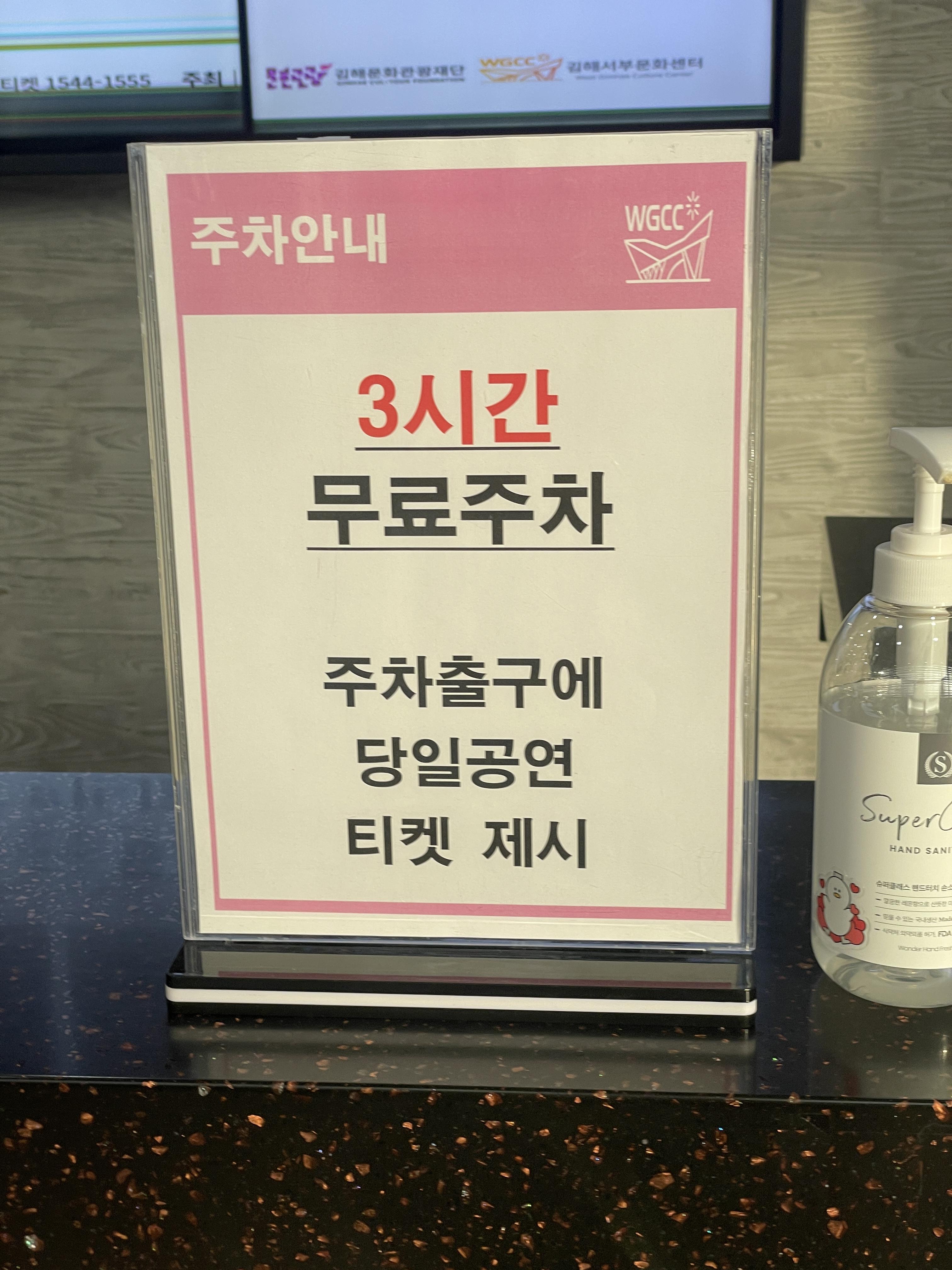 김해서부문화센터에 공연을 보러 온 사람이라면 티켓 제시 시 3시간 무료주차 가능하다.