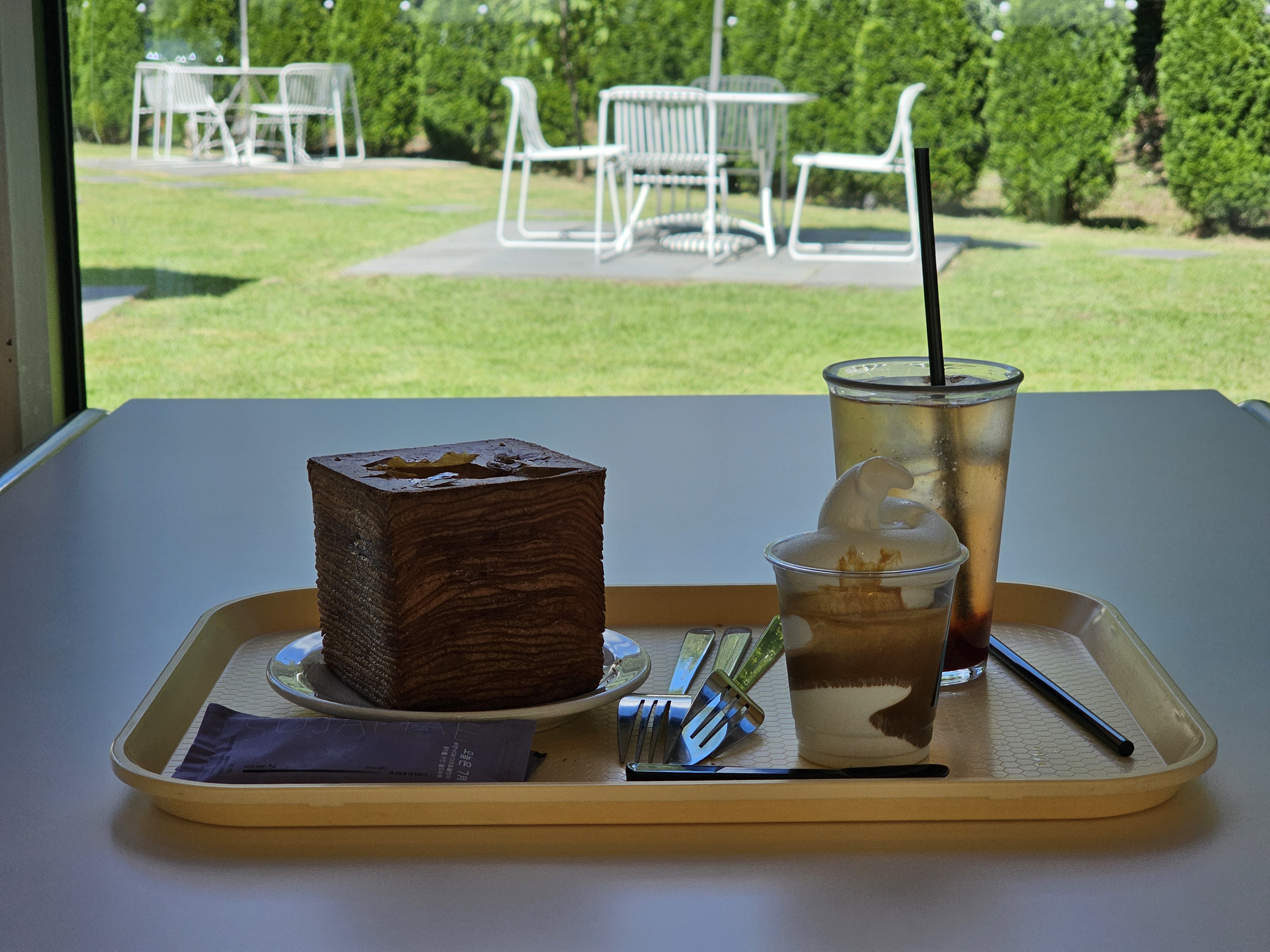카페 창가에 앉아서 정원 쪽을 보았다.