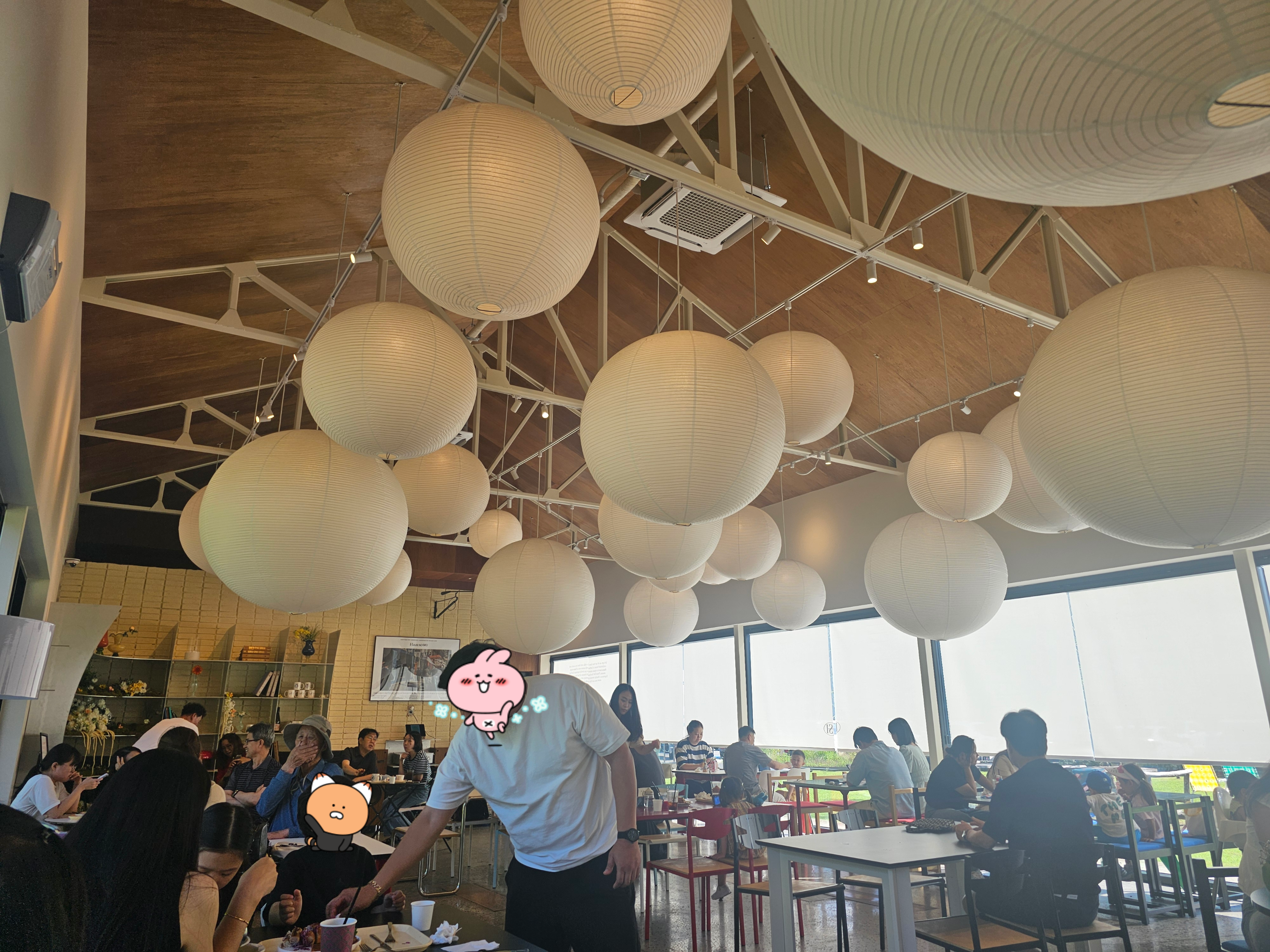 카페 내부. 공중에 매달아놓은 독특한 형태의 조명이 눈에 띈다.