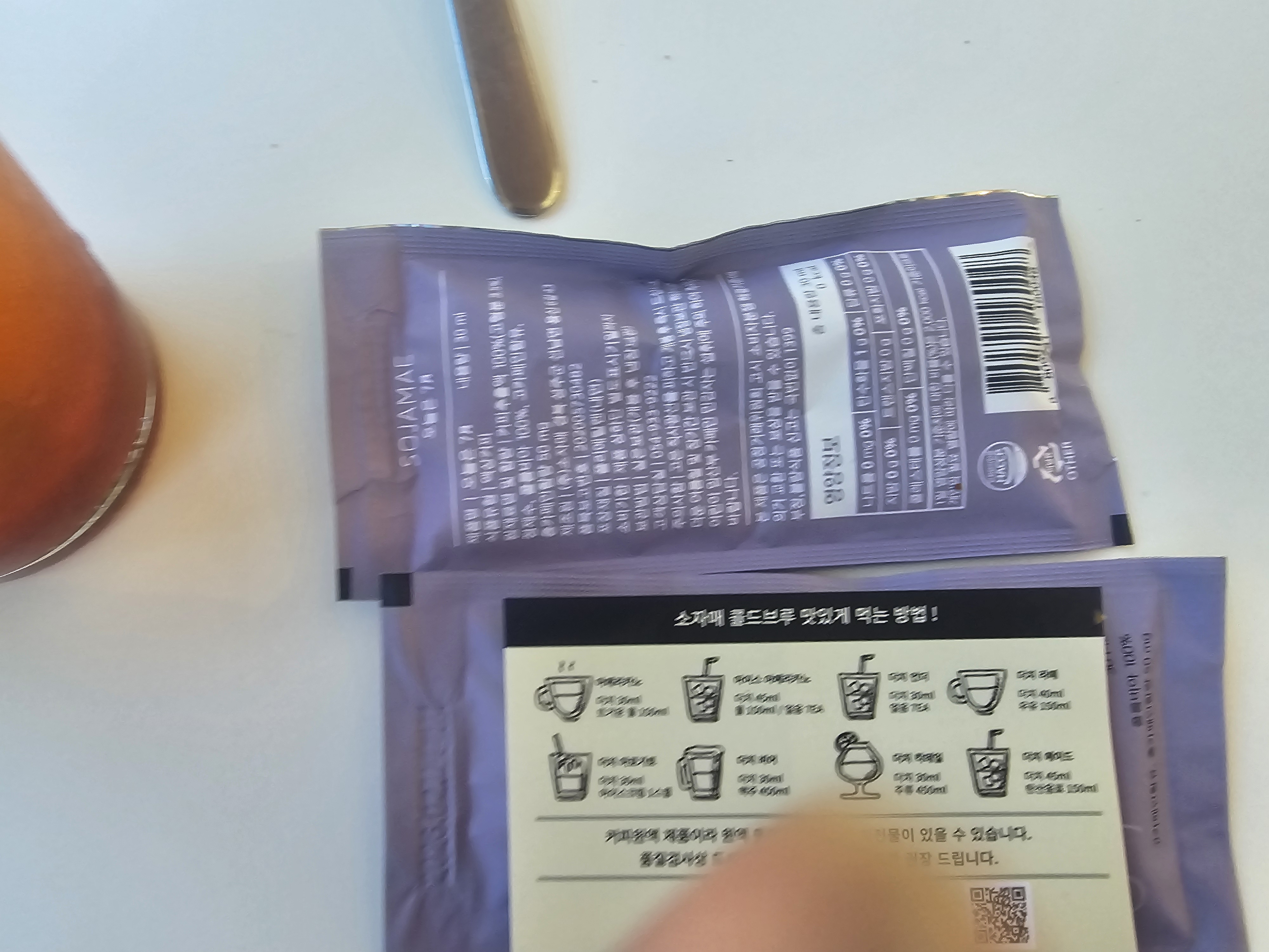 주문하니 이렇게 음료 하나당 콜드브루 1포씩을 주었다.