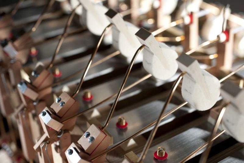 언뜻 보았을 때 피아노와 잘 구별이 안 될 겁니다. 하지만 소리를 내는 방식은 건반을 해머로 때리는 게 아니라 건반에 연결된 기계장치가 현을 뜯어서 소리를 내는 악기입니다. 음색도 피아노와는 전혀 다르며 기타나 류트와 같은 발현악기들과 더 비슷합니다.