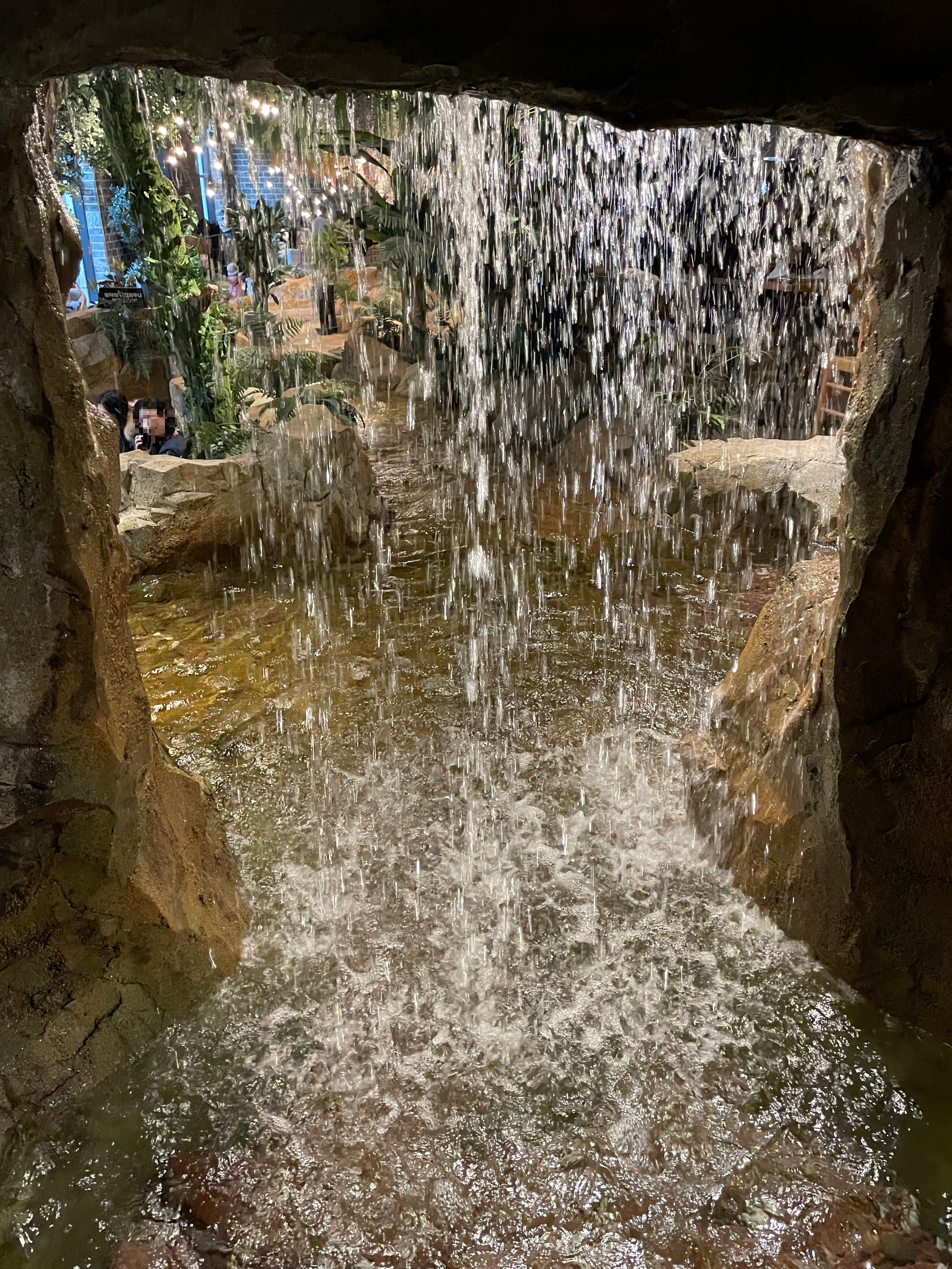 카페 내부는 제법 넓었으며 중앙에 물이 흐르는 작은 개울과 연못, 그리고 폭포가 설치되어 있다. 그리고 그 주위로 식물들이 배치되어 있었다.