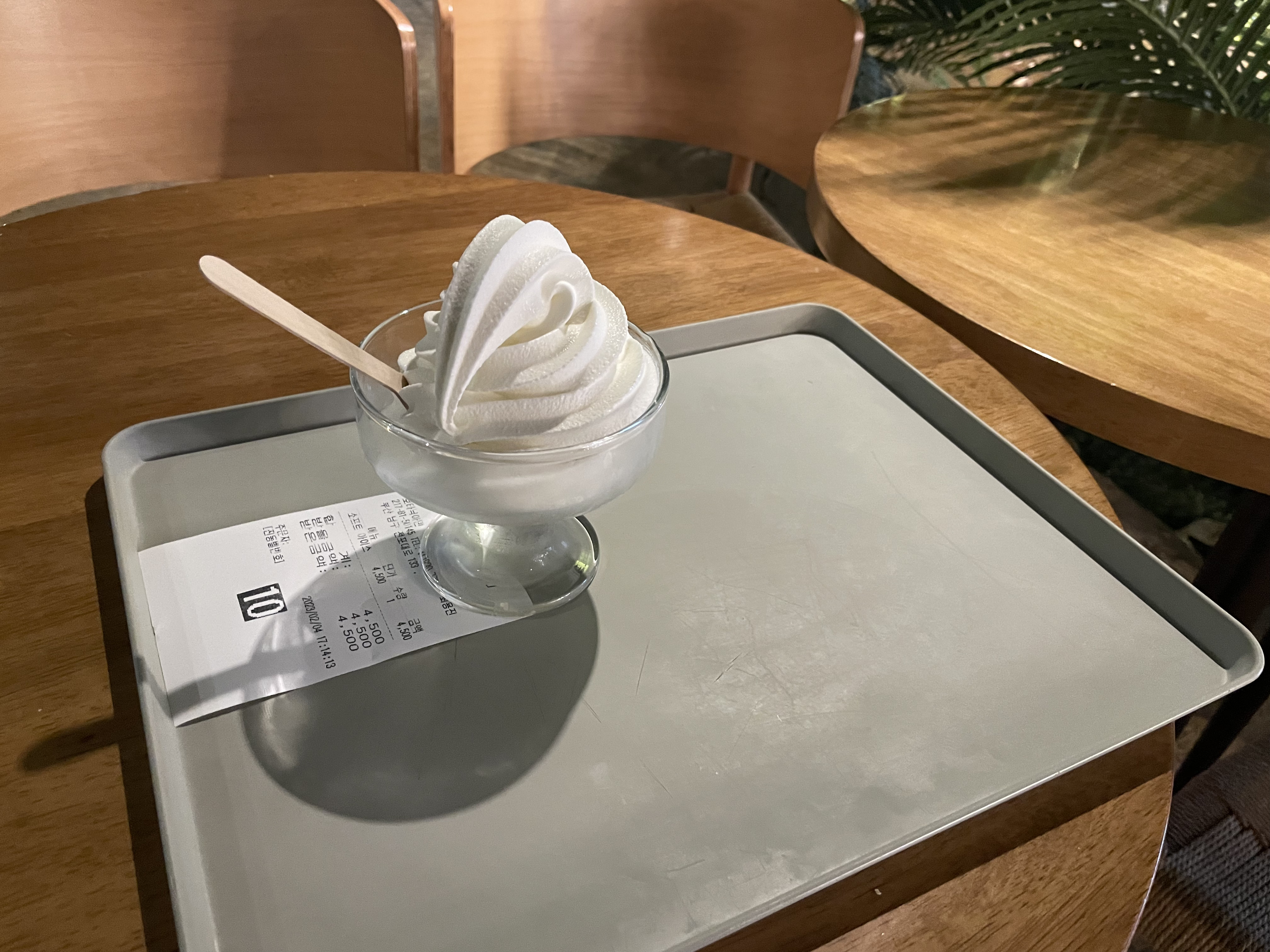 나는 이곳에서 상하목장 아이스크림을 시켜먹었다. 아까 2층 북카페에서 먹으려다 실패한 그 아이스크림이다. 거기에서는 3000원이었는데 이곳에서는 4500원이다...
